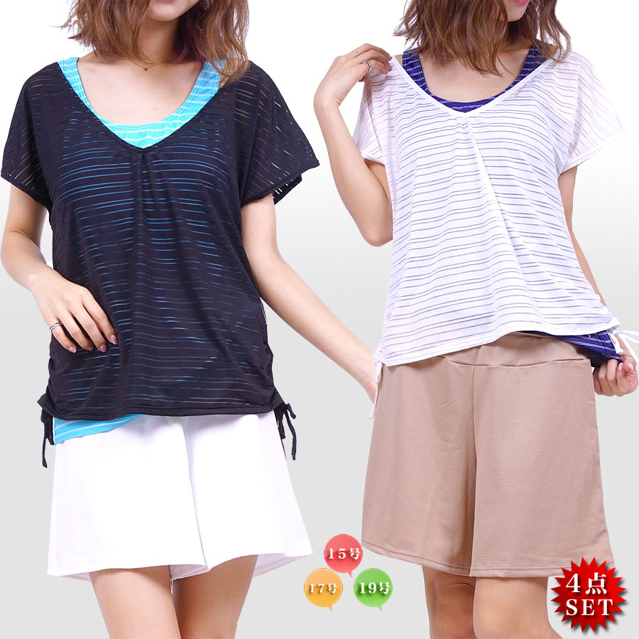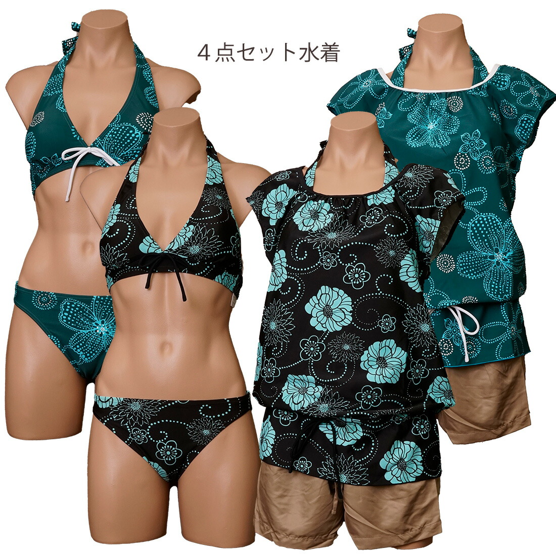限定1着のみ水着 体型カバー タンキニ レディース ビキニ セパレート 4点セット 体型カバー水着 30代 40代 50代 60代 ママ ミセス 水着体型カバー パンツ ショートパンツ 半袖 ママ水着