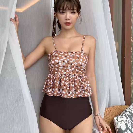 ビキニ レディース 水着 セパレート 小花柄 フラワープリント フローラル ペプラム ハイウエスト 体型カバー 可愛い キュート カジュアル スイムウェア ビーチウェア プール 海 バカンス 夏