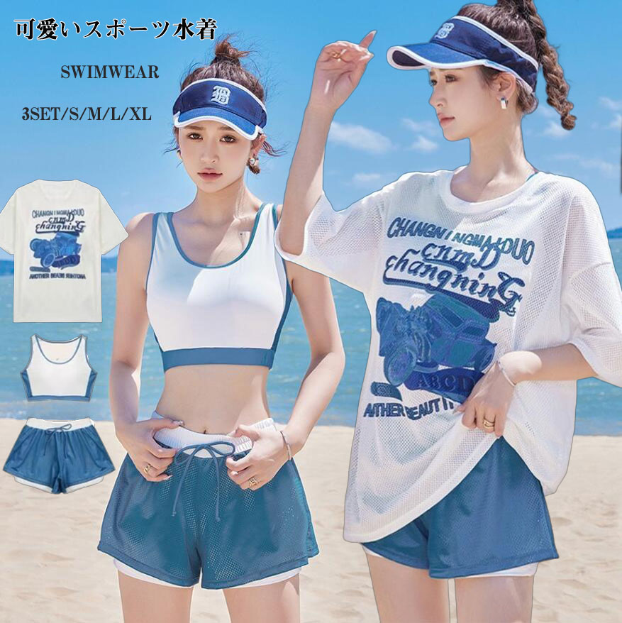 水着 3点セット レディース スポーツ水着 体型カバー 中学生 高校生 水着露出控え 大学生 小胸 uv ママ水着 女の子 ビキニ セパレート ラッシュガード ショートパンツ フィットネ みずぎ