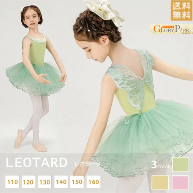 キッズ バレエレオタード 子供サイズ スカート付き 股下スナップ 妖精の羽根 ちょうちょ 背中 セット 女の子 子供用 ジュニア ダンス 演出 新体操 練習 ステージ衣装 発表会 バレリー レッスン着