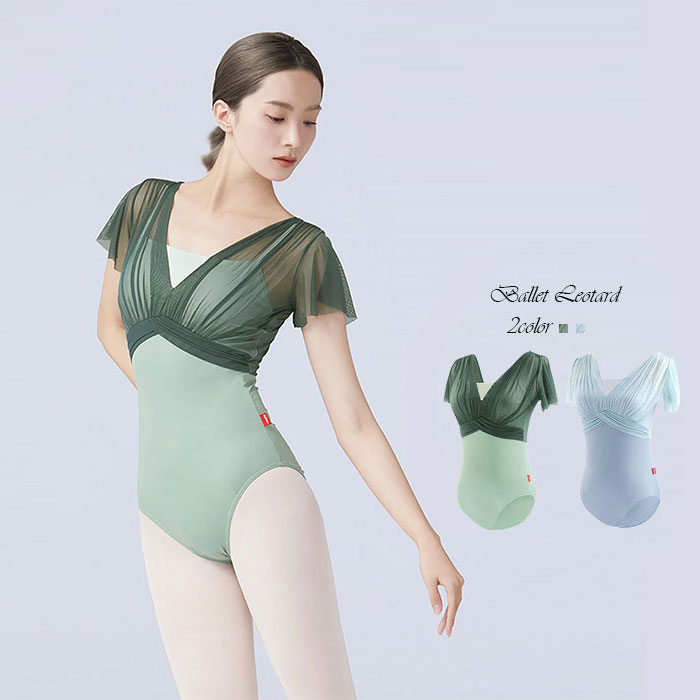 バレエ レオタード 大人 半袖 花柄 メッシュ 大人用 バレエレオタード エレガント Vネック 異素材 おしゃれ 大人バレエ バレエ用品 ジュニア 大人のレオタード