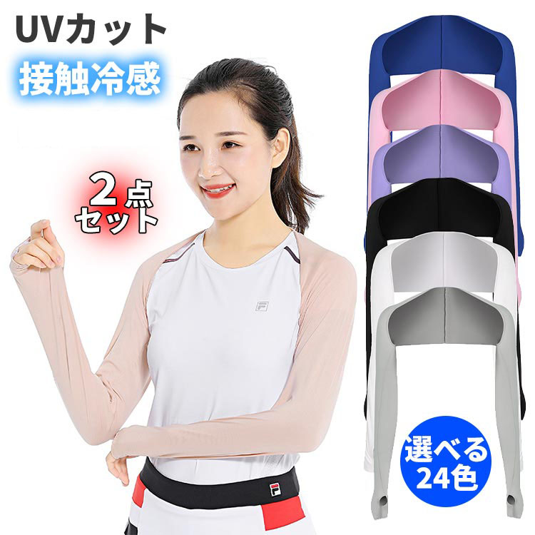 2双セット アームカバー UV 冷感 メンズ レディース UVカット 吸汗速乾 クール 接触冷感 アーム カバー フィット感 伸縮性 通気性 涼しい おしゃれ スポーツ 紫外線 日焼け対策 腕カバー