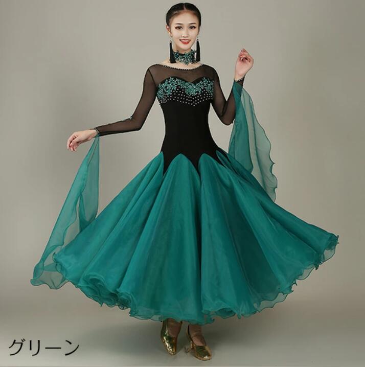 社交ダンス ドレス スタンダード パーティー モダンドレス 社交ダンス衣装 ダンス発表会 広がる裾 社交ダンスドレス 競技着 演出用 スタンダードドレス ワルツダン 練習着