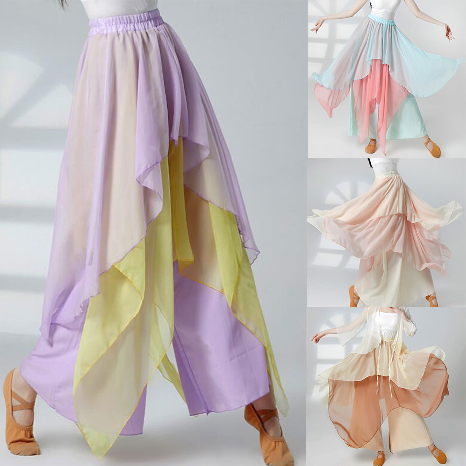 ダンスパンツ シフォンパンツ レディースワイドパンツ ダンスウェア ヨガパンツ グラデーション レッスン着 バレエダンス ヨガ 新体操 ステージ衣装 団体服 3色 古典ダンス