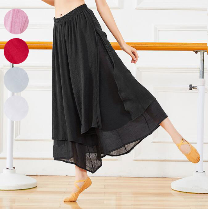 ダンスパンツ 綿麻パンツ ワイドパンツ ダンスウェア レディースパンツ ロング丈 スリット ヨガパンツ レッスン着 バレエダンス モダンバレエ リラックスヨガ 古典ダンス ステージ衣装 団体服 新体操