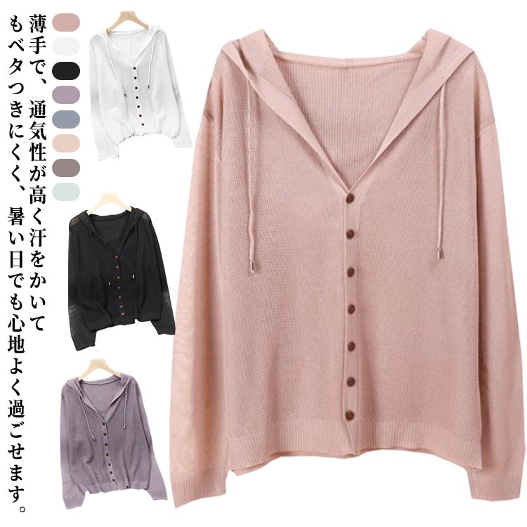 接触冷感 サマーカーディガン レディース アイスシルク フード付き 大きいサイズ vネック メッシュ UVカット 前開き 紫外線 冷感 通気性 冷房対策 長袖 無地 夏 涼しい 薄手 カジ 春
