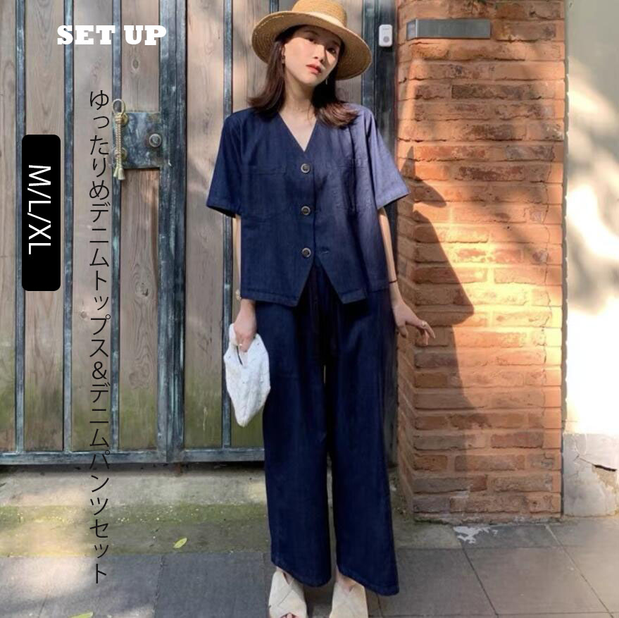 デニム セットアップ レディース シャツ ショートパンツ 上下セット トップス デニムパンツ 短パン 2点セット Gジャン ジージャン カジュアル ファッション おしゃれ ゆったり 体型 韓国