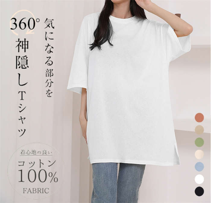 Tシャツ レディース トップス カットソー 半袖 五分袖 無地 ロンt オーバーサイズ 春 夏 ロングtシャツ 大きいサイズ 体型カバー ゆったり ベーシック 白T ティーシャツ ビッグシ ボックスT